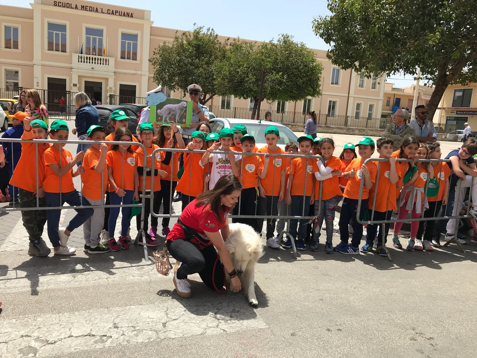 “Cani tra i banchi di scuola” per educare gli esseri umani al rispetto per tutti gli animali. E’ questo il senso di una lezione di educazione cinofila che si è svolta, questa mattina, fuori all’ingresso del plesso scolastico “Lido” e che ha coinvolto tutte le ventinove classi di scuola primaria. La scuola, oggi, ha accolto con entusiasmo la proposta ricevuta dall’Associazione ASCA e del suo presidente, Corrado Di Rosa. Ogni classe, in occasione della manifestazione, ha preparato disegni e cartelli con illustrazioni di cani di diversa tipologia e taglia.