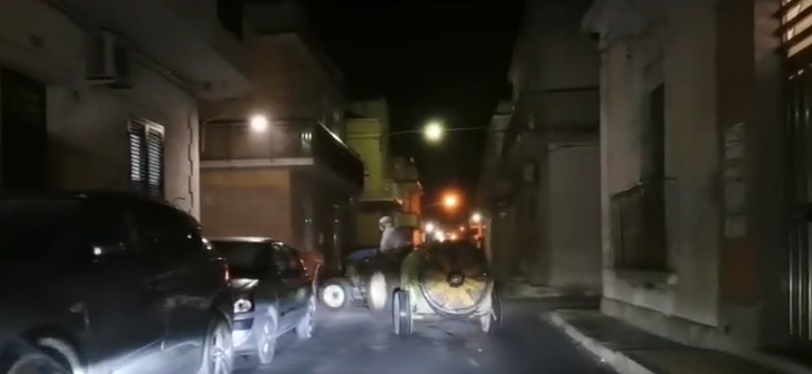 Emergenza Coronavirus. Continua la sanificazione del territorio comunale. La scorsa notte, per potere effettuare le operazioni, sono stati reclutati diversi “trattoristi” che hanno messo a disposizione il proprio mezzo.
