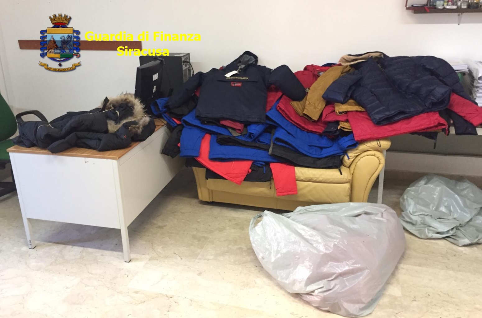 Una pattuglia della Tenenza di Noto ha rilevato la presenza di una persona di origine africana intenta alla vendita di giubbini raffiguranti la nota griffe “Napapijri” palesemente contraffatti, che sono stati immediatamente sequestrati.