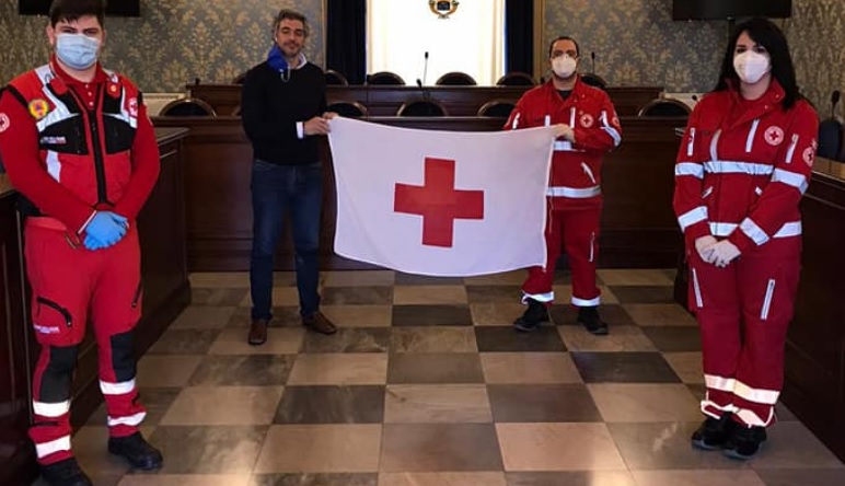 Stamattina, il presidente Stefano Genovese, con una piccola delegazione di volontari, ha consegnato al sindaco Luca Cannata la bandiera CRI da esporre sul balcone del Comune per l’intera settimana.
