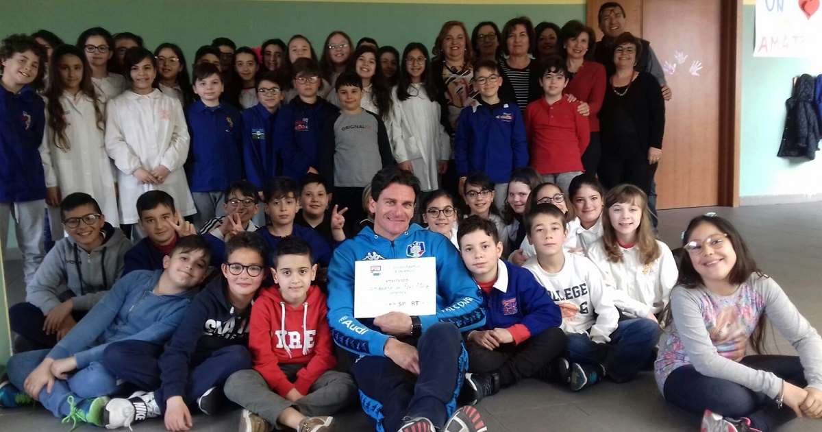 News. Questa mattina il plesso “Coletta” del I Circolo didattico “De Amicis” ha ospitato il campione mondiale di salto con l’asta, il siracusano Giuseppe Gibilisco ad accoglierlo le classi IV e V che partecipano al progetto “Sport di classe”, promosso dal Miur.