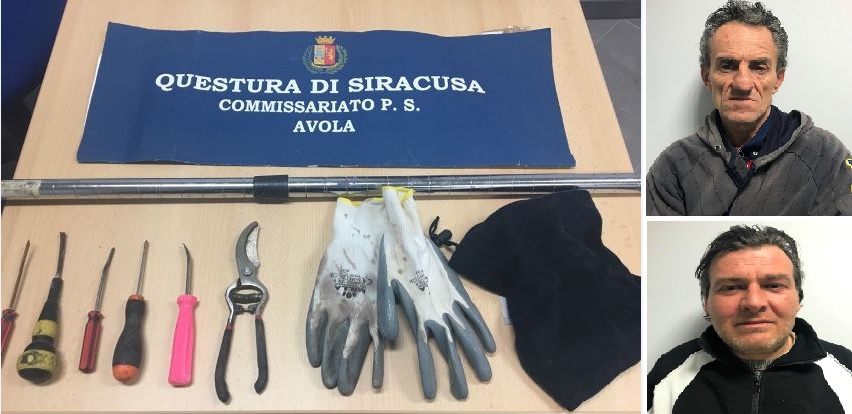 Gli investigatori, dopo un’attività di pedinamento e appostamento, sorprendevano i due mentre perpetravano il furto all’interno di un’attività commerciale di Avola, dopo aver forzato la porta d’ingresso in alluminio e vetro della stessa attività.